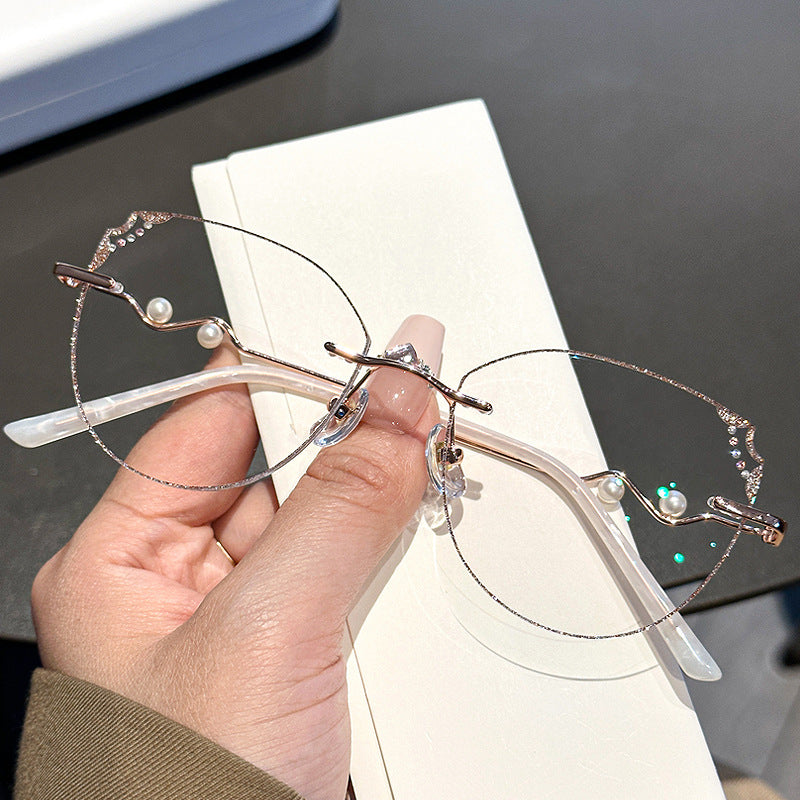 Sparkle Cat Eye Rimless Glasses for Women VK2380