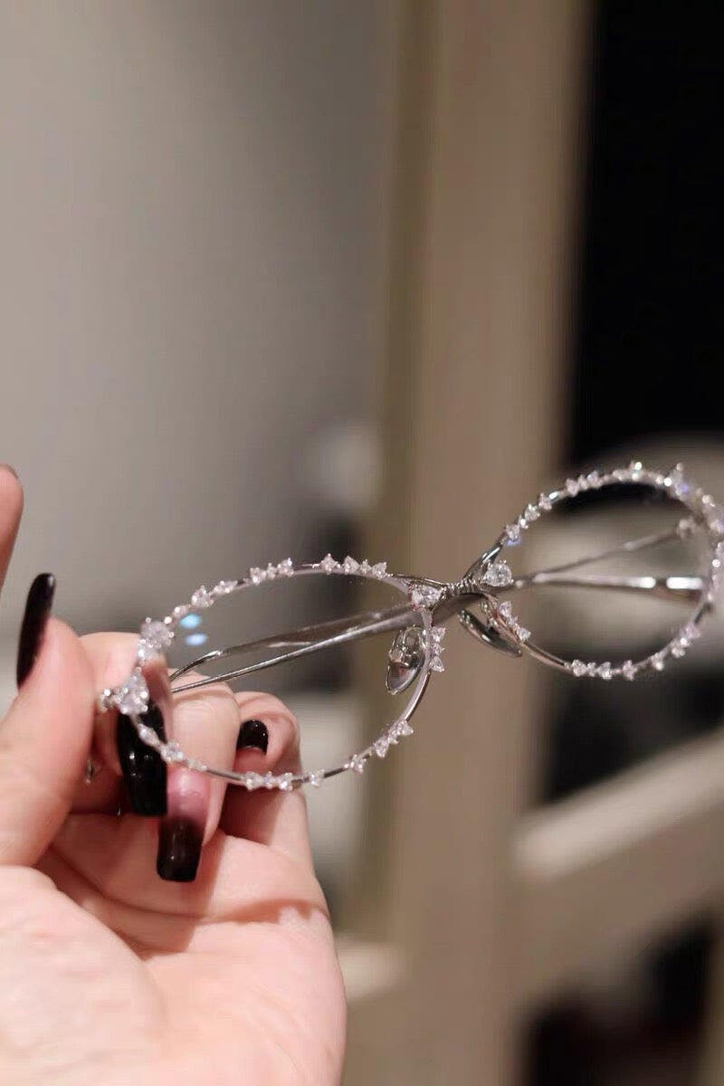 These oval metal eyeglasses feature delicate crystal embellishments along the edges. Perfect for parties, they'll make you stand out from the crowd.