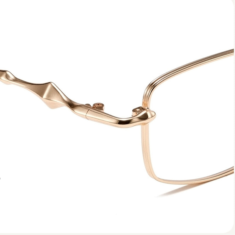 Bold Rectangle Glasses with Gold Engraved Metal Temples VK2395