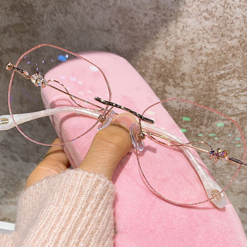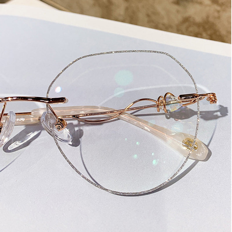 Glitter Rimless Glasses with Zircon-Decorated Temples VK2393
