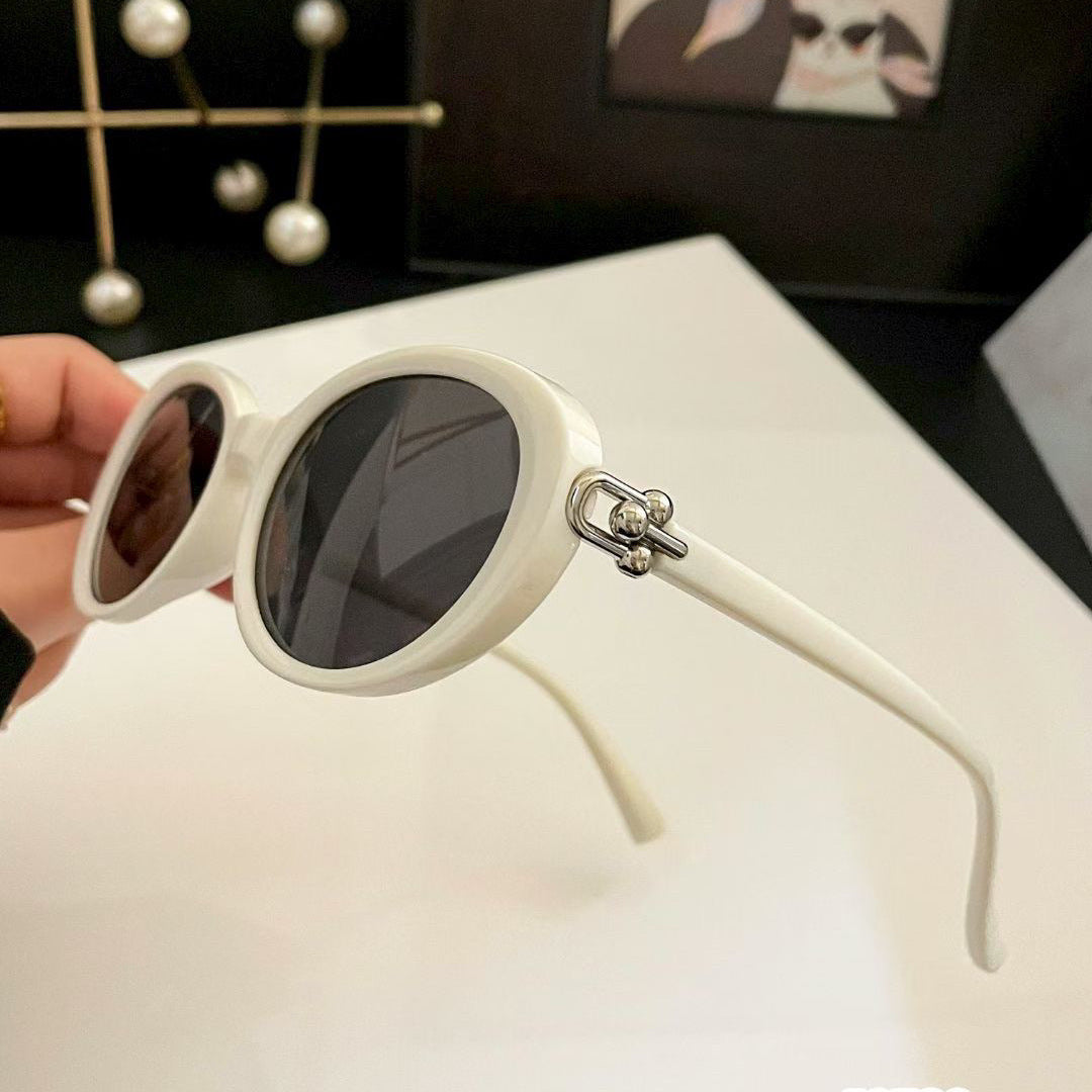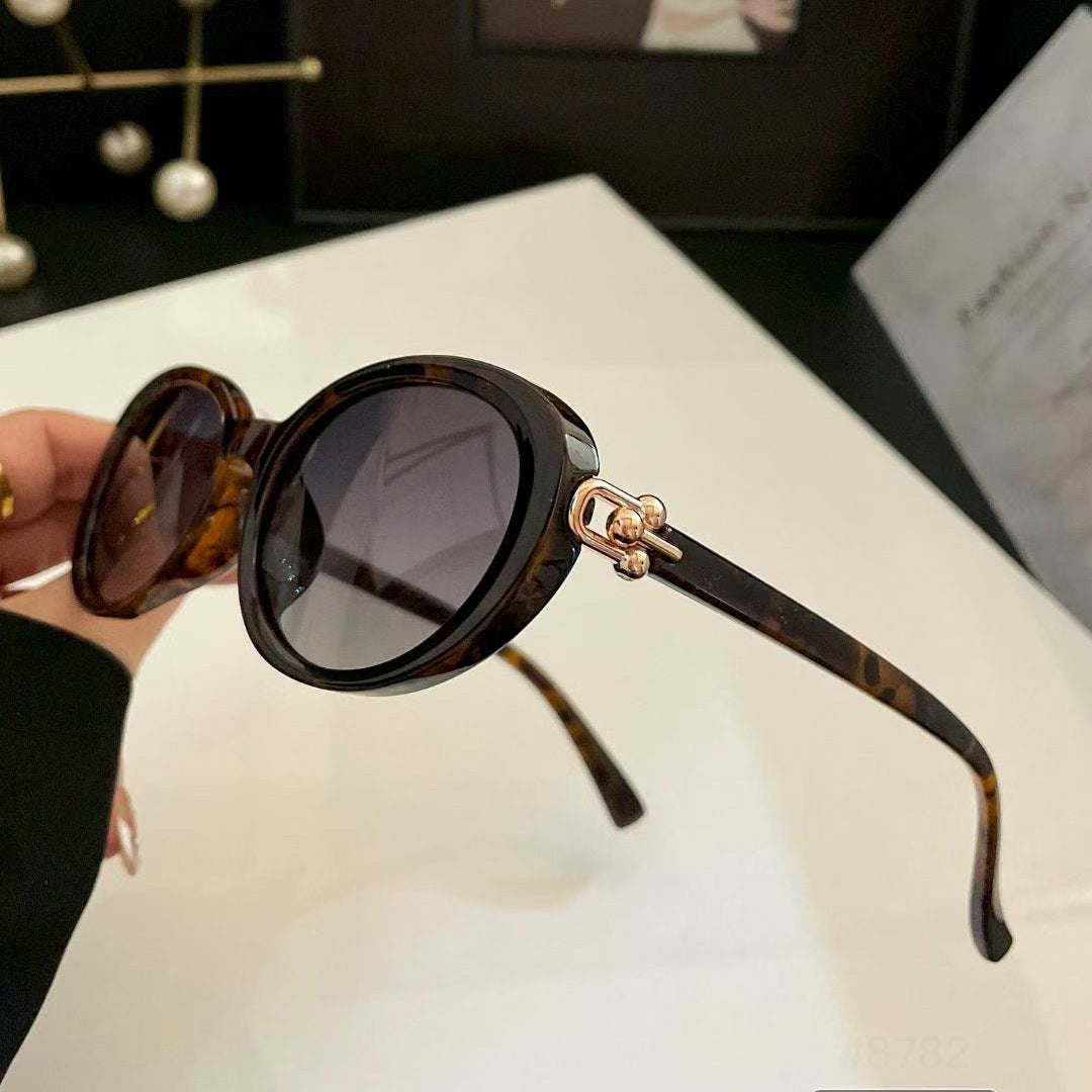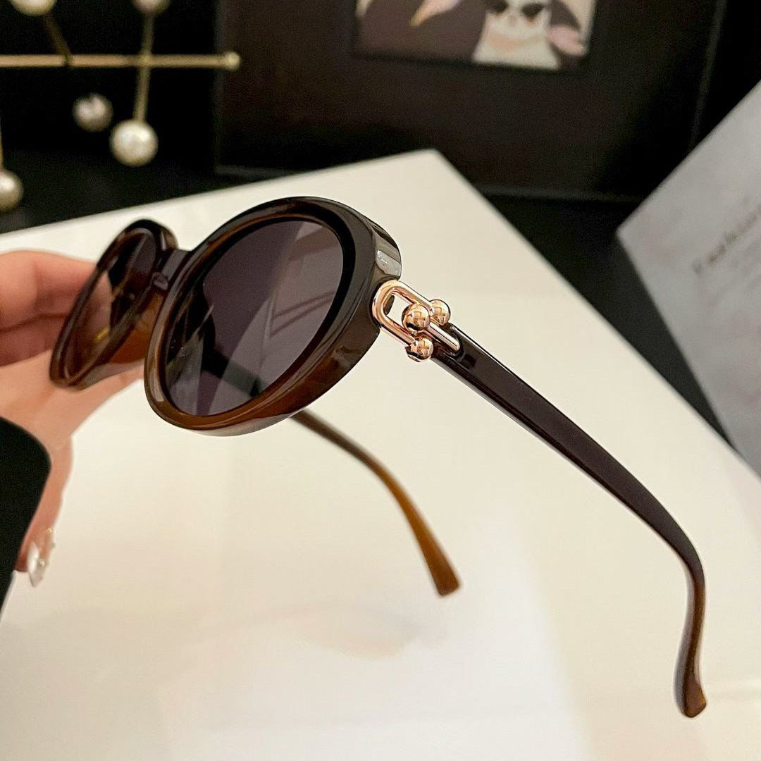 The most striking feature of these sunglasses lies in their distinctive gold metal hinge details. The metal components form a unique "double-sphere" connecting structure, creating a highly fashionable visual focal point.