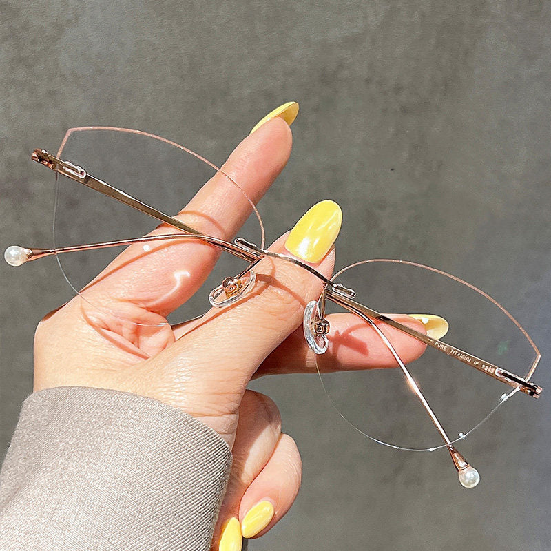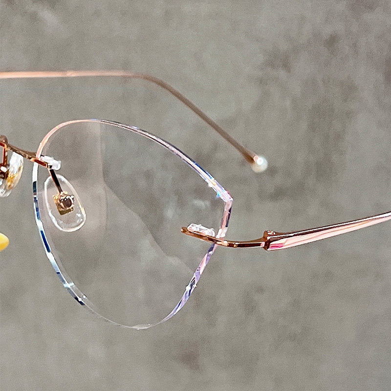Rimless Cat Eye Glasses with Glitter Edge Detail VK2391