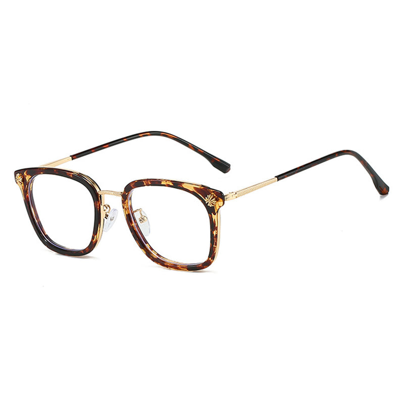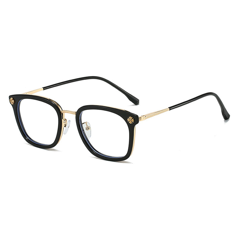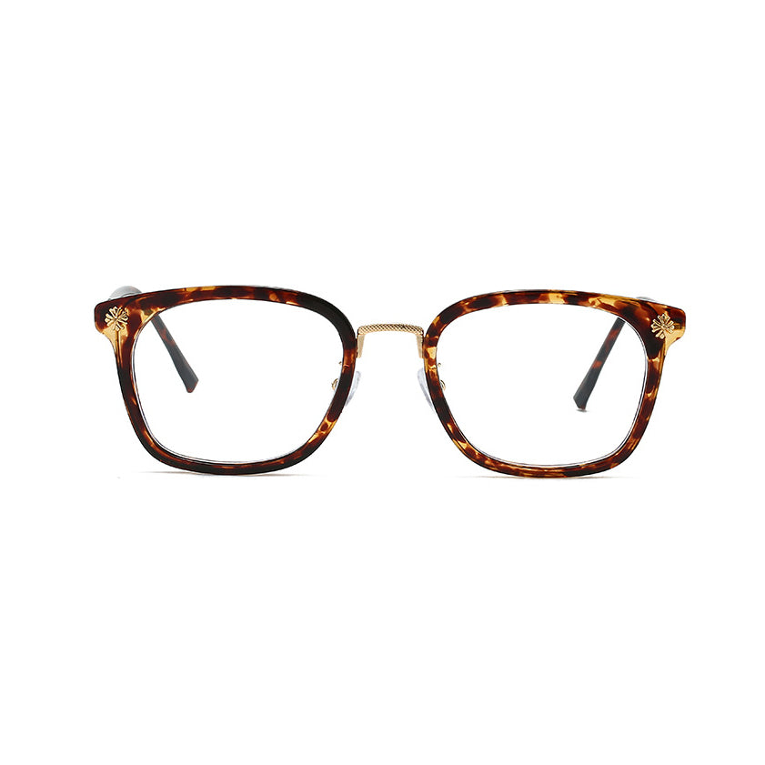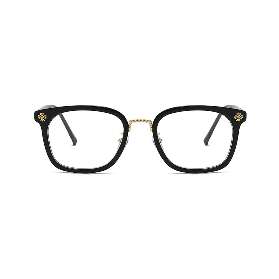 Bold Rectangle Glasses with Gold Engraved Metal Temples VK2395