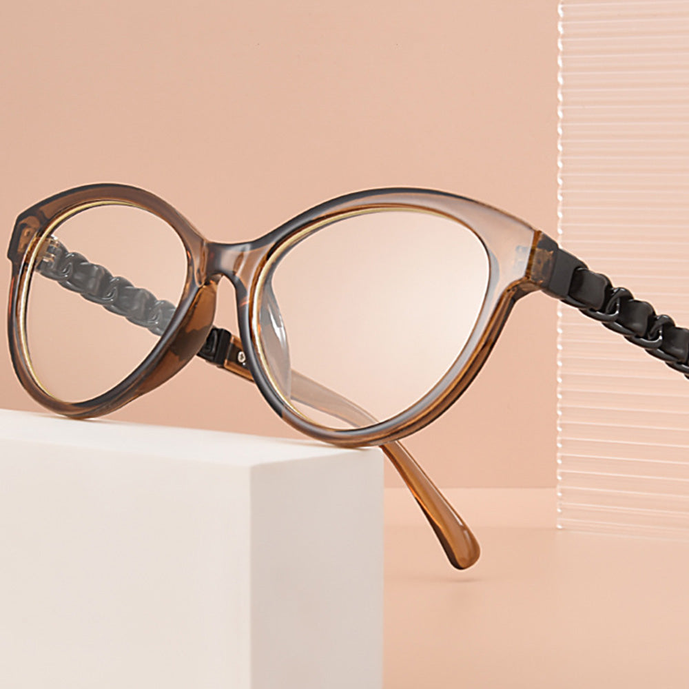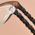 These retro cat-eye glasses combines classic and modern elements. The unique braided temples show personality and add retro charm. A variety of color options are suitable for various occasions and styles. It is an ideal choice to show personality and fashion.