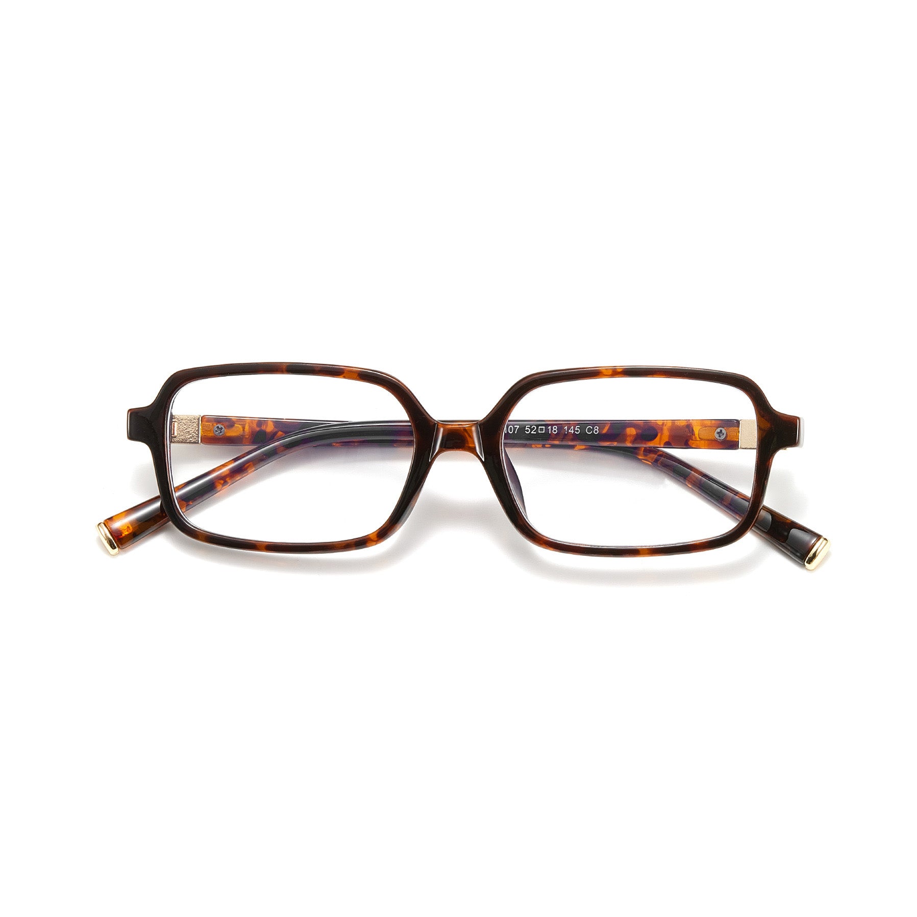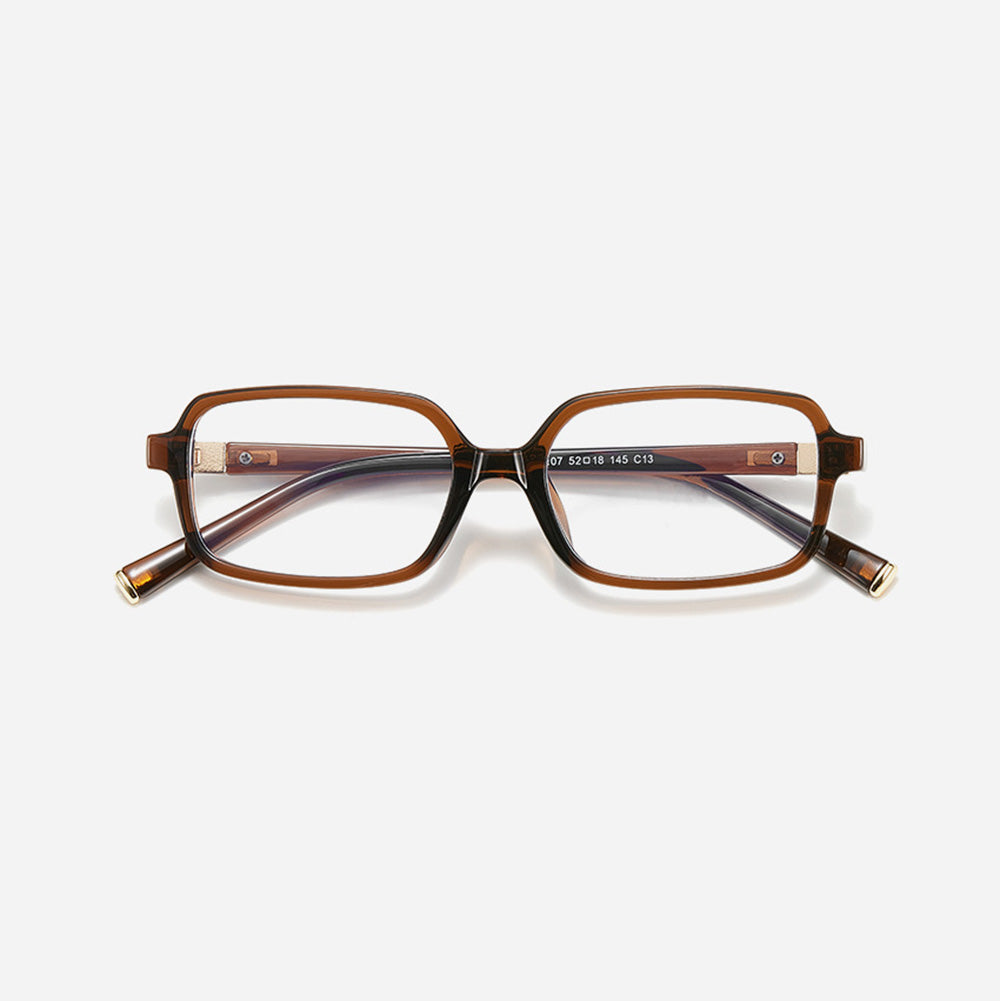 With a bold rectangular frame, these glasses are both classic and modern. Premium TR material ensures durability and comfort, and the frame has a fine and shiny finish. Subtle gold details on the temples add a touch of elegance.