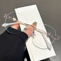 These rimless glasses feature charming heart-shaped details on the temples, perfectly blending simple elegance with playful details to add a sweet and stylish touch to your look.